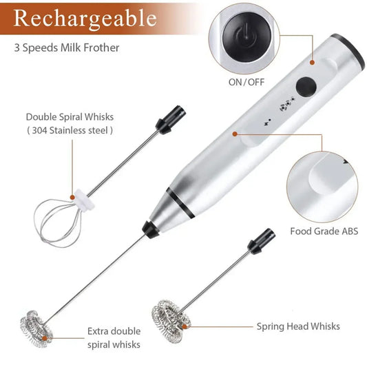 USB Rechargeable Electric Milk Frother – 3-Speed Handheld Coffee & Egg B...